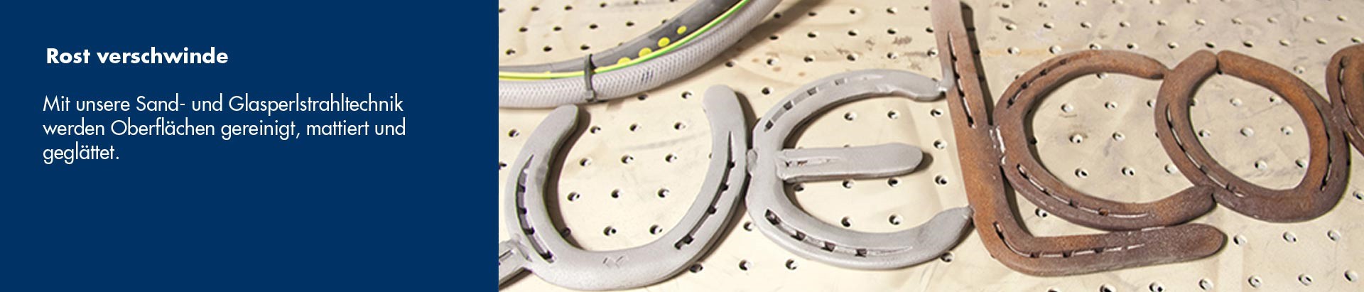 Zu unserem Repertoire an Dienstleistungen zählen nun auch die Sand- und Glasperlenstrahltechnik, mit welcher wir mühelos Rost und Korrosion entfernen und das Material reinigen, mattieren und glätten. Beim Sandstrahlverfahren wird die Oberfläche